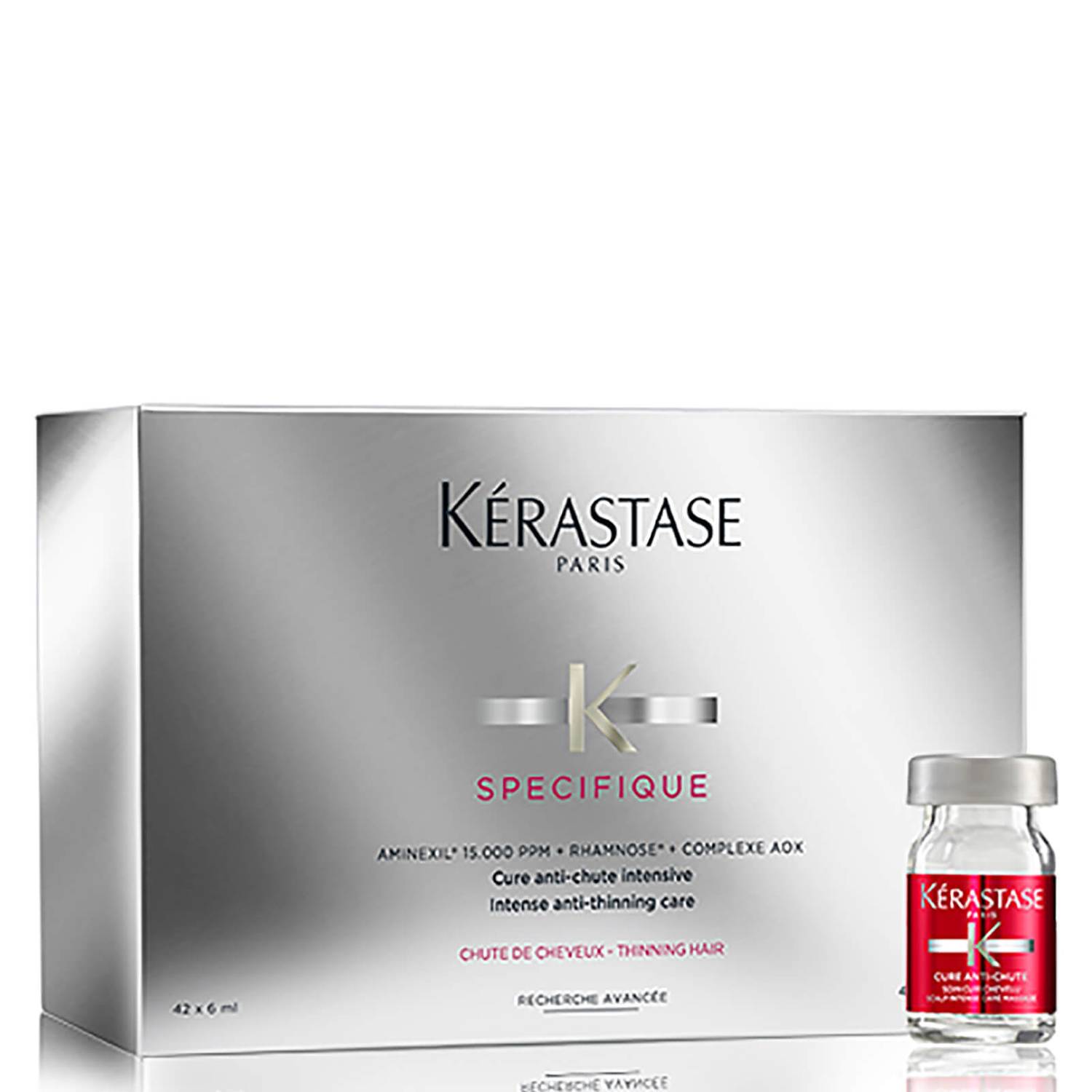 Boost thin and lacklustre locks with the Specifique Cure Anti-Chute Treatment from Kérastase, an intensive 4-week treatment specifically formulated for thinning hair. Utilising innovative haircare technology, the serum penetrates deep into the fibre to repair and strengthen.