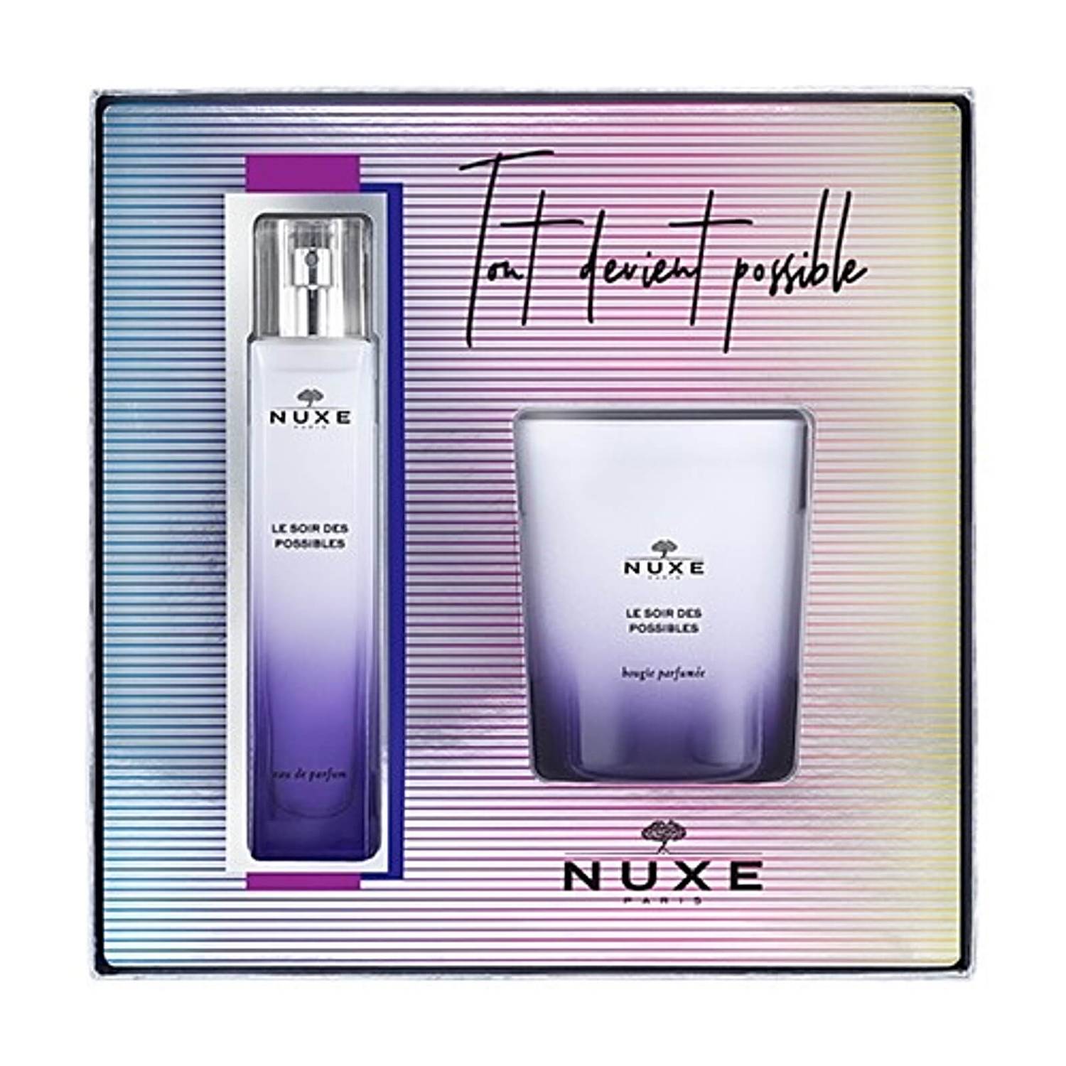 Set your senses alight with the NUXE Soir des Possibles Perfume and Candle, a luxurious gift set infused with the captivating Soir des Possibles fragrance.